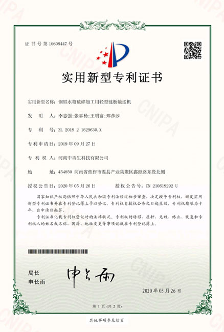 ZL201921629630X_銅鋁水箱破碎加工用輕型鏈板輸送機
